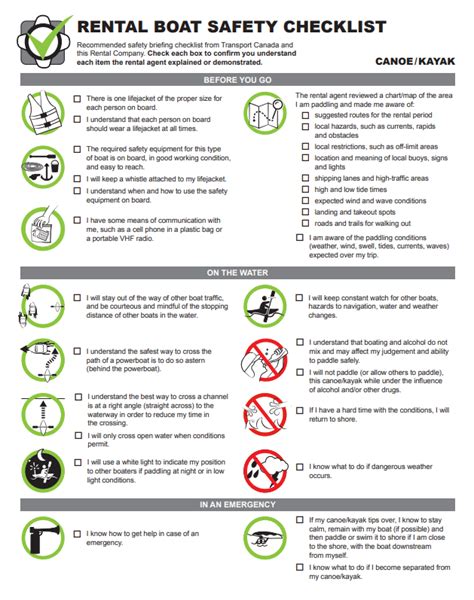 In conclusion, a canoe safety checklist is a crucial tool for ensuring a safe and enjoyable canoeing experience. By following a checklist, you can identify potential risks, pack necessary safety equipment, and prepare for emergencies. Remember to tailor your checklist to your specific needs and the conditions of your canoe trip. Stay safe and have fun exploring the waters!